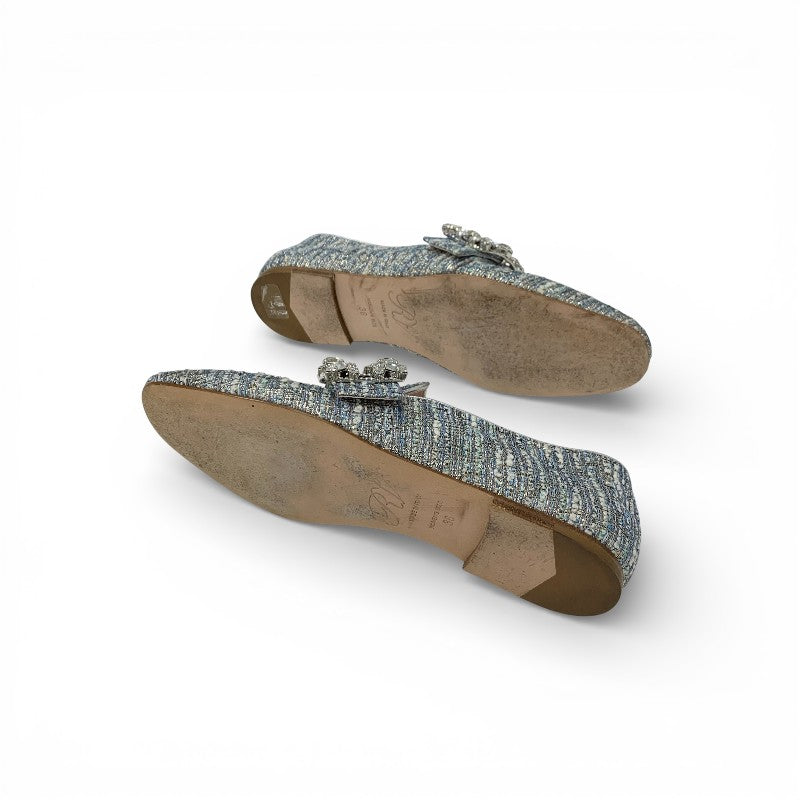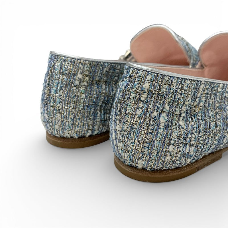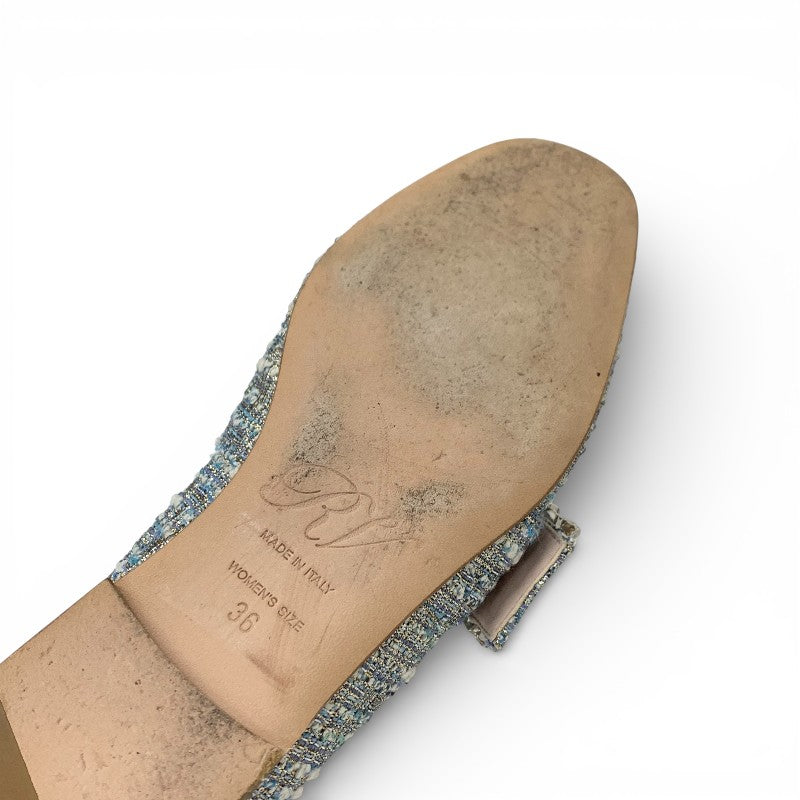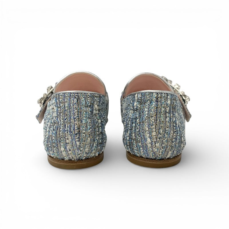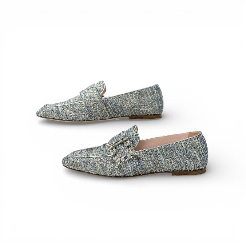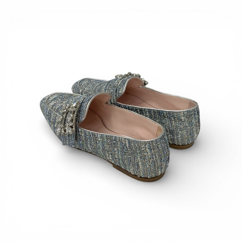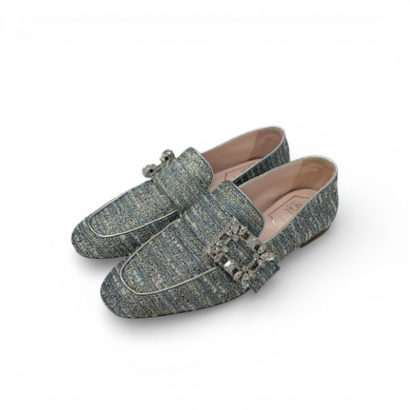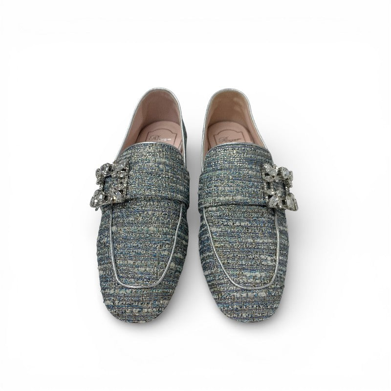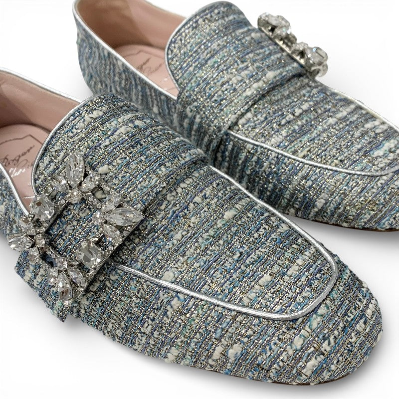 ロジェヴィヴィエ Roger Vivier MOCASSINO RV BROCHE ローファー 革靴 靴 シューズ ツイード ライトブルー ストラスバックル ビジュー